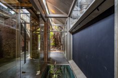 Durante o processo de restauração, as paredes rebocadas foram cuidadosamente raspadas até que a alvenaria original voltasse a aparecer, e a marcenaria em teca birmanesa — característica das antigas construções coloniais — foi recuperada. Parte das estruturas metálicas e coberturas foi removida, devolvendo ao terreno o pátio contínuo que aparecia nas plantas originais.