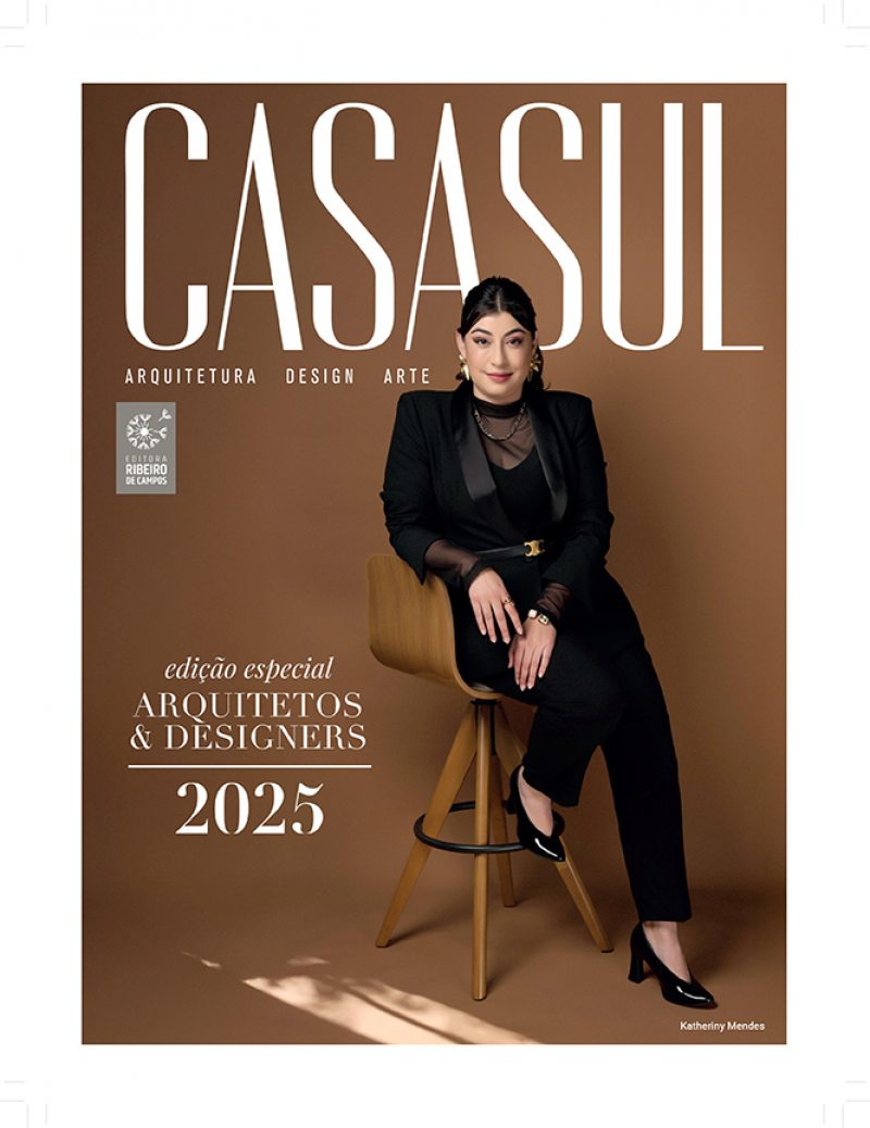 A profissional participa do Especial Casa Sul, apresentando seu trabalho em uma edição com capa personalizada, que reflete sua visão estética e sua sensibilidade como criadora.