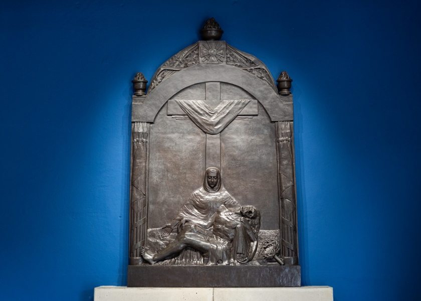 Esculpida em pedra em 1917, na Igreja de Saint Martin, na Normandia, a obra foi considerada perdida por quase 70 anos. Sobreviveu intacta aos bombardeios da Segunda Guerra Mundial e foi redescoberta apenas em 2013. A partir desse resgate, foi possível fundi-la em bronze no Brasil. Hoje, o público pode ver o exemplar no Memorial Paranista.