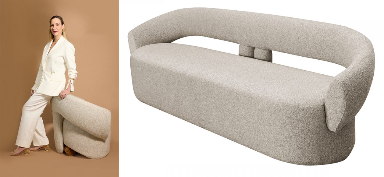 Entre os lançamentos autorais apresentados na feira, a designer gaúcha Marta Manente apresenta a coleção Terroir, composta por sofá e poltrona desenvolvidos em parceria com a indústria Modalle. O projeto parte de um conceito conhecido no universo da vitivinicultura — o terroir — que relaciona solo, clima, cultura e tempo como fatores que definem a identidade de um vinho. Transportada para o design, a ideia aparece em formas orgânicas e em uma estrutura na qual a madeira da base funciona como eixo visual da peça, evocando a imagem das raízes de uma videira. A coleção combina alumínio, madeira de teca e tecidos tecnológicos pensados para ambientes internos e externos.
