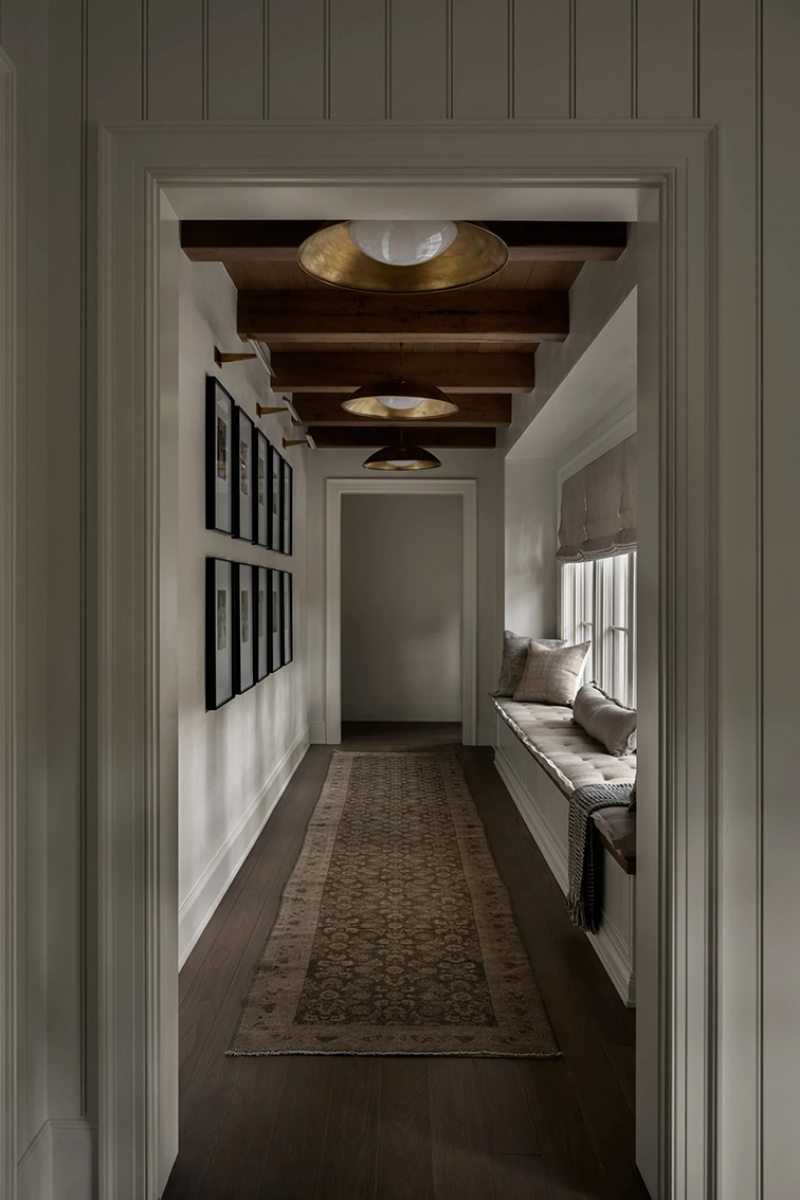 A iluminação natural conduz a experiência da casa ao longo do dia, criando cenas que variam entre áreas de convivência junto à lareira e cantos mais reservados. Os materiais naturais e o desenho limpo ajudam a construir uma atmosfera silenciosa, pensada para a rotina familiar.