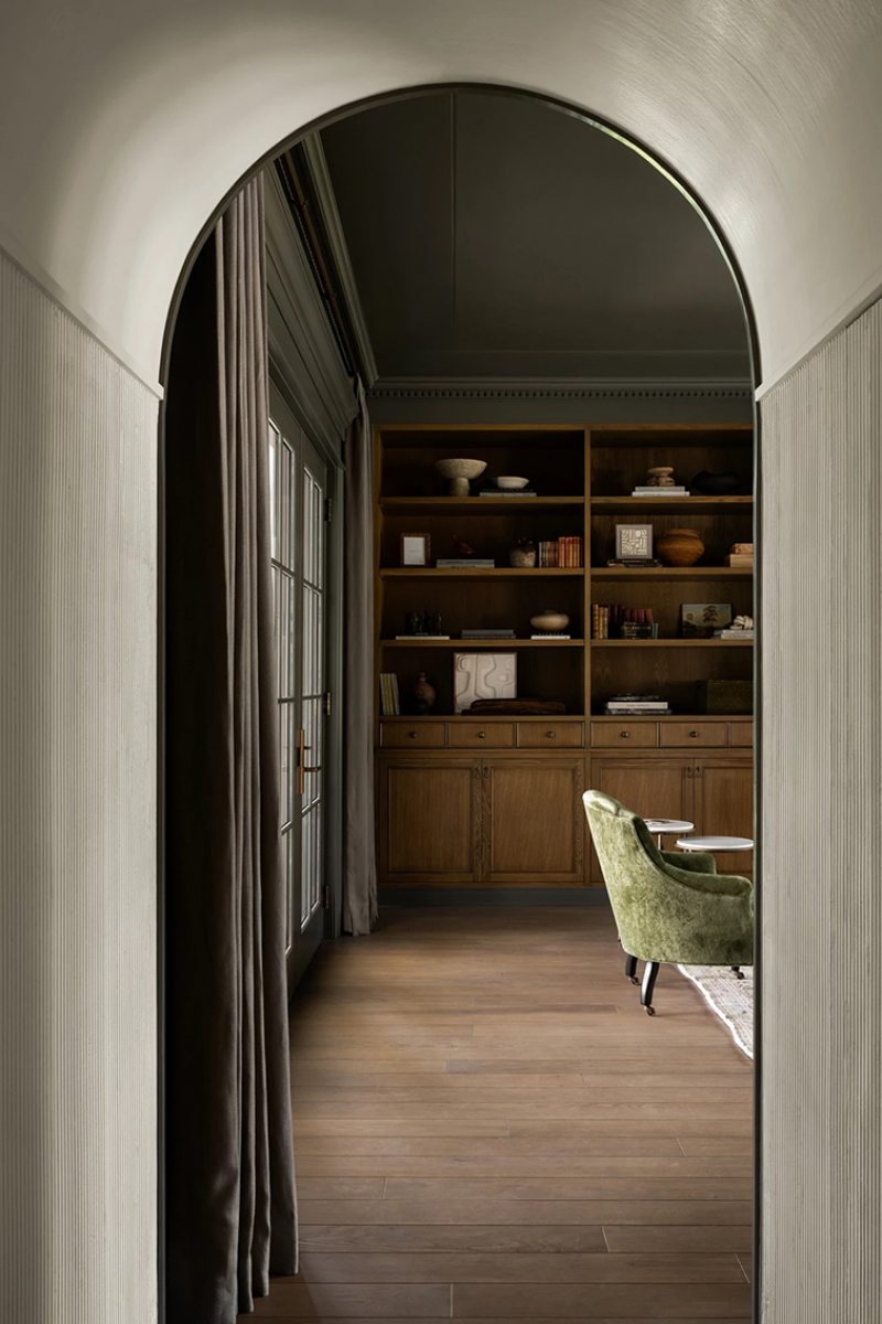 Localizada em Houston, a residência foi concluída em 2024 como casa da família do ex-jogador da Major League Baseball (MLB), principal liga profissional de beisebol dos Estados Unidos, Jason Castro. A proposta parte de uma base arquitetônica clássica para construir interiores acolhedores, marcados por madeira, marcenarias desenhadas sob medida e uma paleta mais densa e quente.