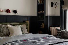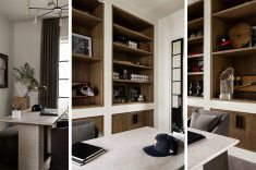Um dos pontos que reforçam o caráter pessoal do projeto é a área dedicada à exposição de memorabilia do beisebol, incorporada à marcenaria. O recurso revela como arquitetura e interiores também acomodam a história de quem vive ali, sem recorrer a elementos chamativos.