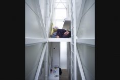 A Keret House, em Varsóvia, projeto criado pelo arquiteto polonês Jakub Szczesny em 2012, foi construída no vão entre dois prédios e tem largura que varia de aproximadamente 72 cm a 1,22 m. Apesar da largura mínima, a casa tem dois níveis, uma pequena cozinha, banheiro compacto, espaço para dormir e área de trabalho. A circulação é vertical, com escadas tipo escada-naval, e praticamente todo o mobiliário é feito sob medida.