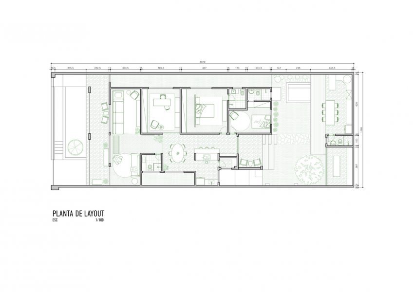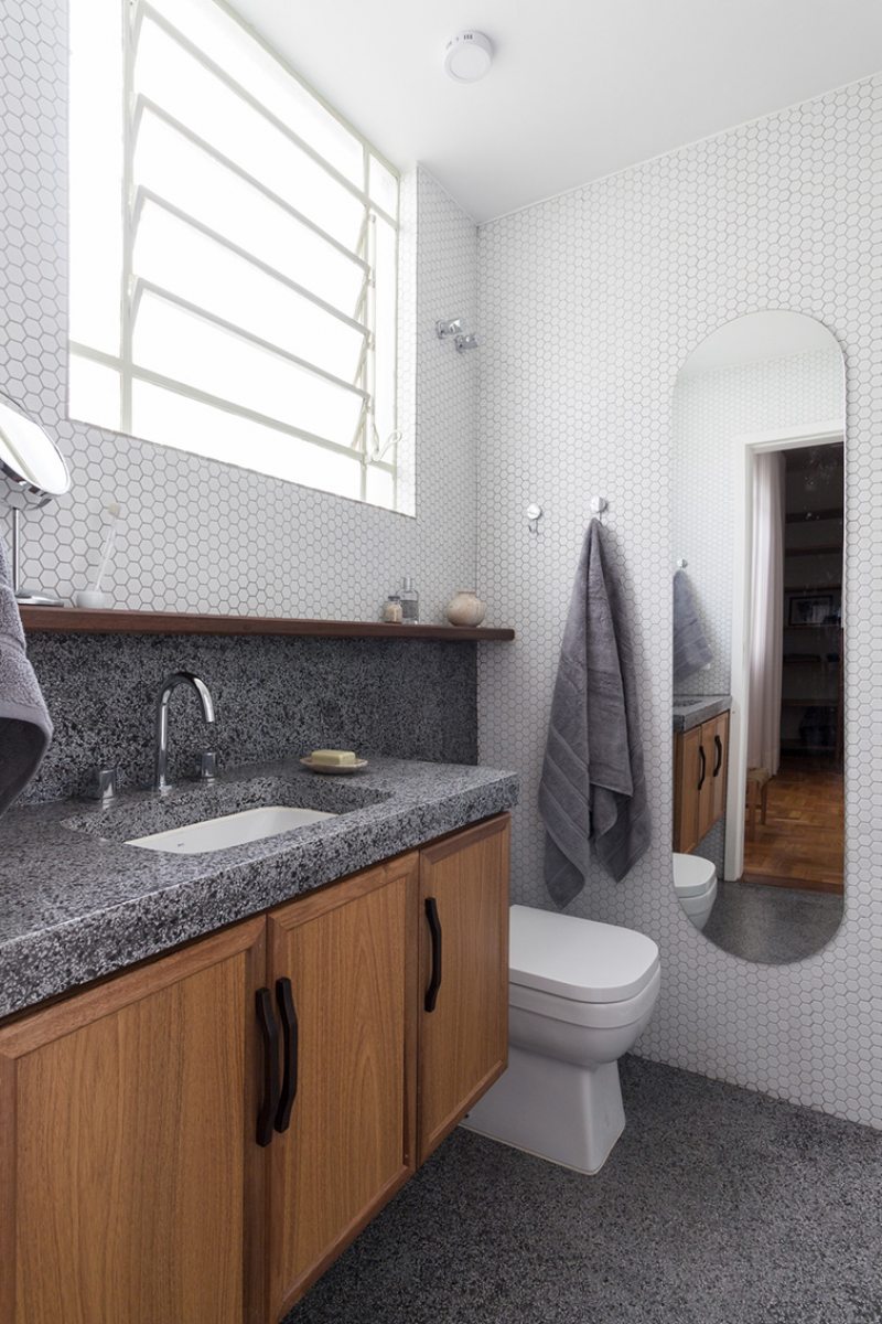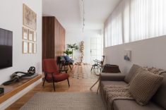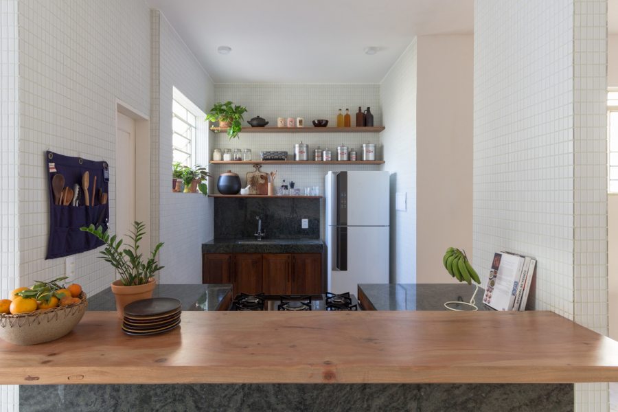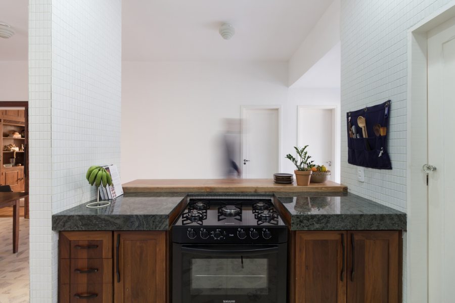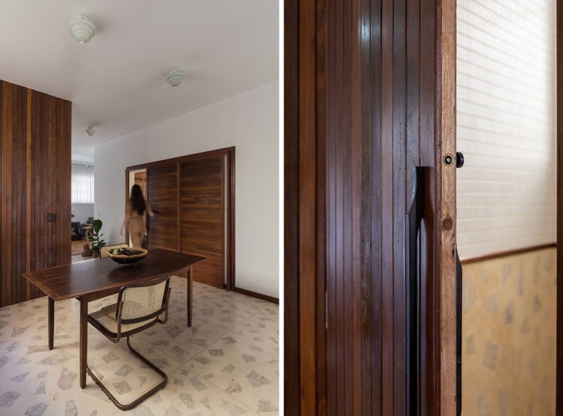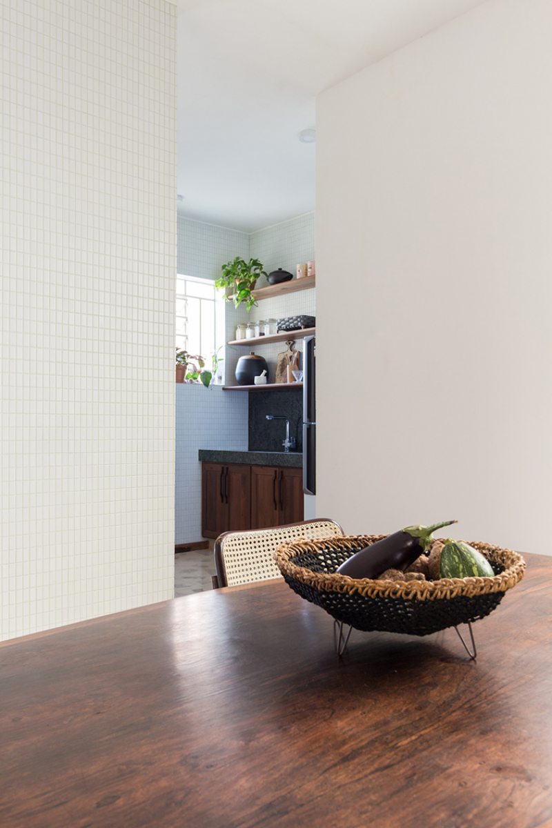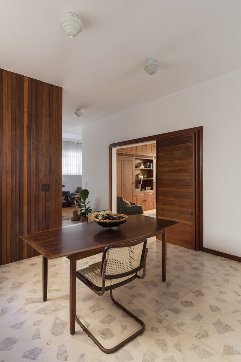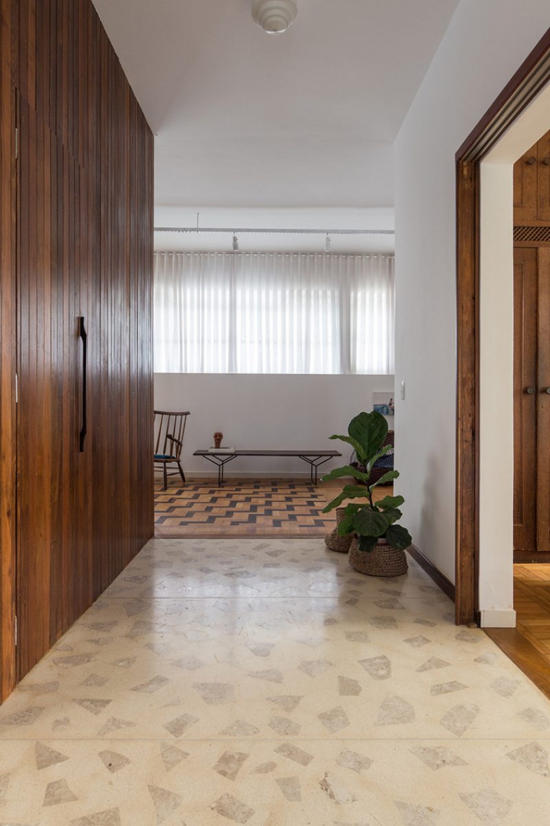 Após anos em que o imóvel foi utilizado para locação comercial com uma consequente despersonalização, outros desafios também tiveram que ser enfrentados: a compartimentação excessiva, um corredor muito estreito ligando a sala e a despensa, e a escolha descuidada de revestimentos cerâmicos em quase todos os ambientes.