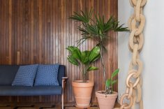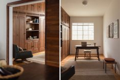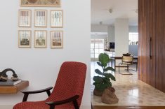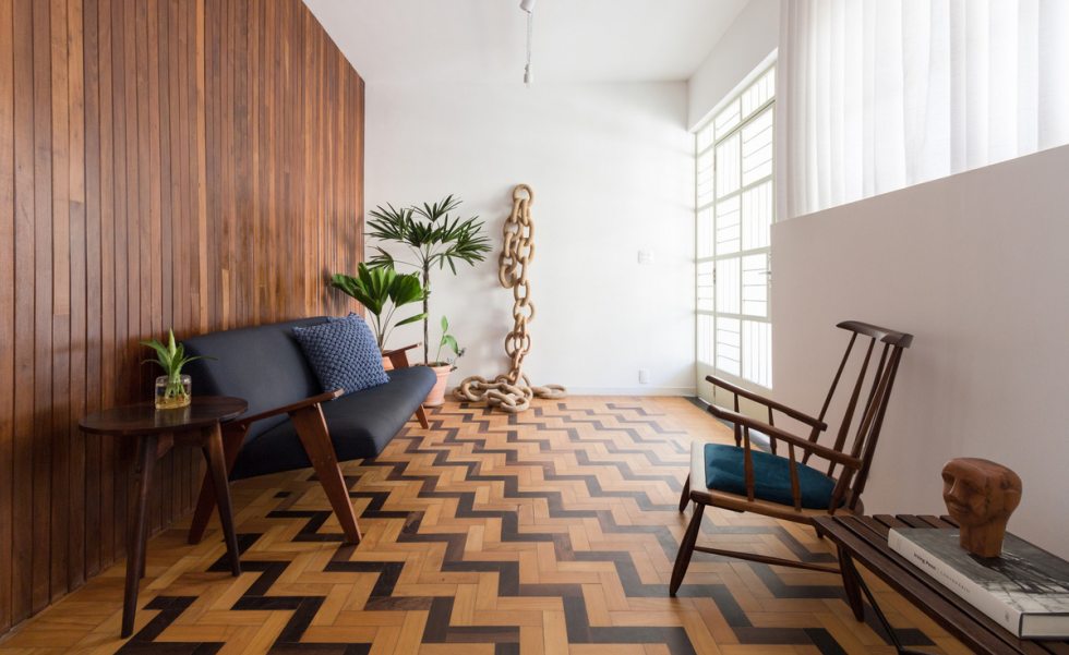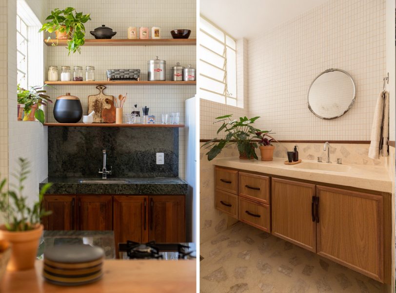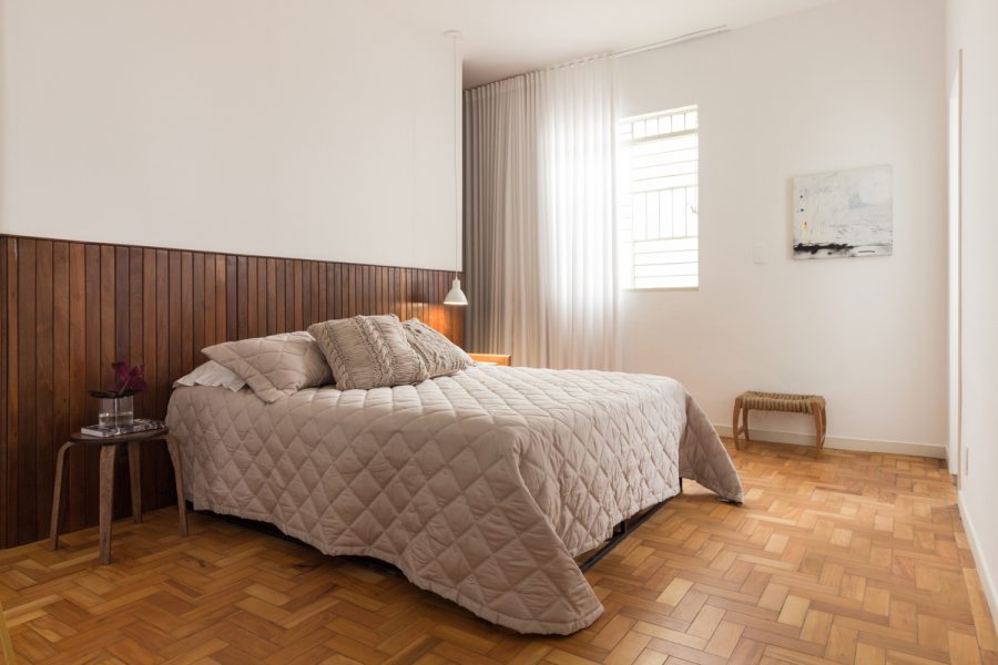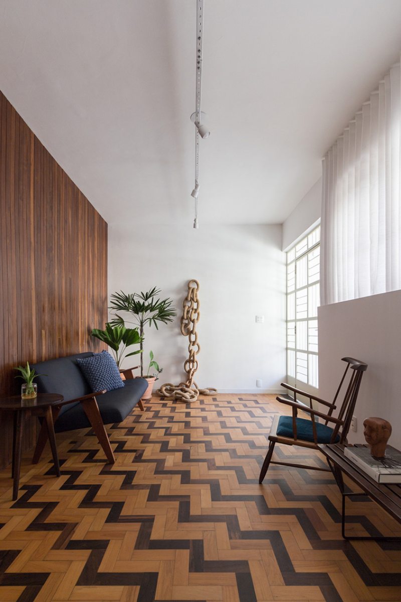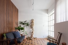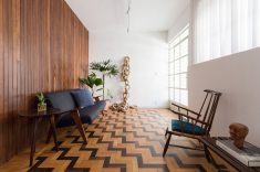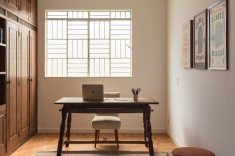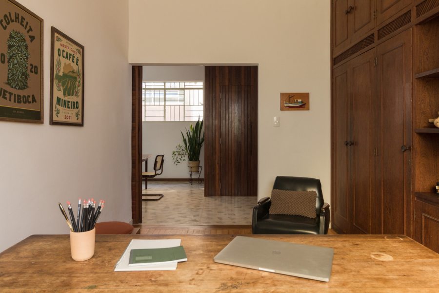 “A casa apresentou alguns caminhos importantes para trabalharmos, como recuperar e valorizar o piso da sala, um taco desenhado com peças de peroba e braúna; os guarda-corpos em serralheria de desenhos geométricos e o quintal, um luxo em pleno centro de Belo Horizonte”, prossegue Pedro.