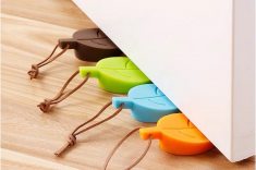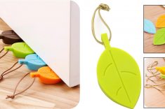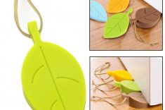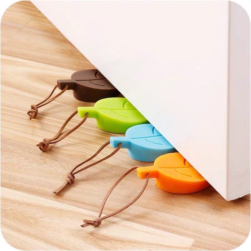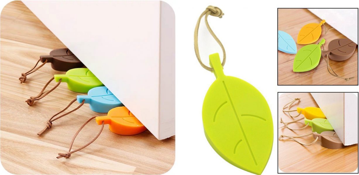 Em formato de folha e feito de silicone flexível, este prendedor se adapta a diferentes alturas de porta e tipos de piso. A inclinação garante boa fixação — mesmo quando há vento — e as quatro cores disponíveis permitem escolher entre tons discretos, como o marrom, ou versões mais divertidas em verde, azul e amarelo.