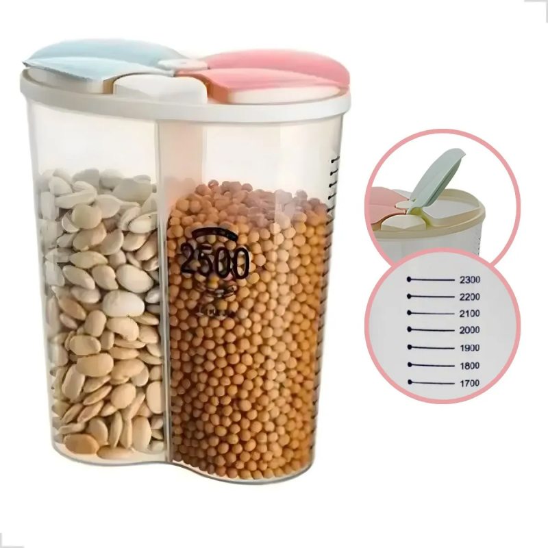 Com divisórias internas e tampa individual, este dispenser é perfeito para armazenar grãos, cereais, farinhas ou até granola e aveia. O modelo transparente, disponível com duas ou quatro divisórias, facilita ver o conteúdo, e o design compacto permite levá-lo direto da despensa à mesa. Um organizador simples que deixa tudo mais à mão — e ainda bonito.