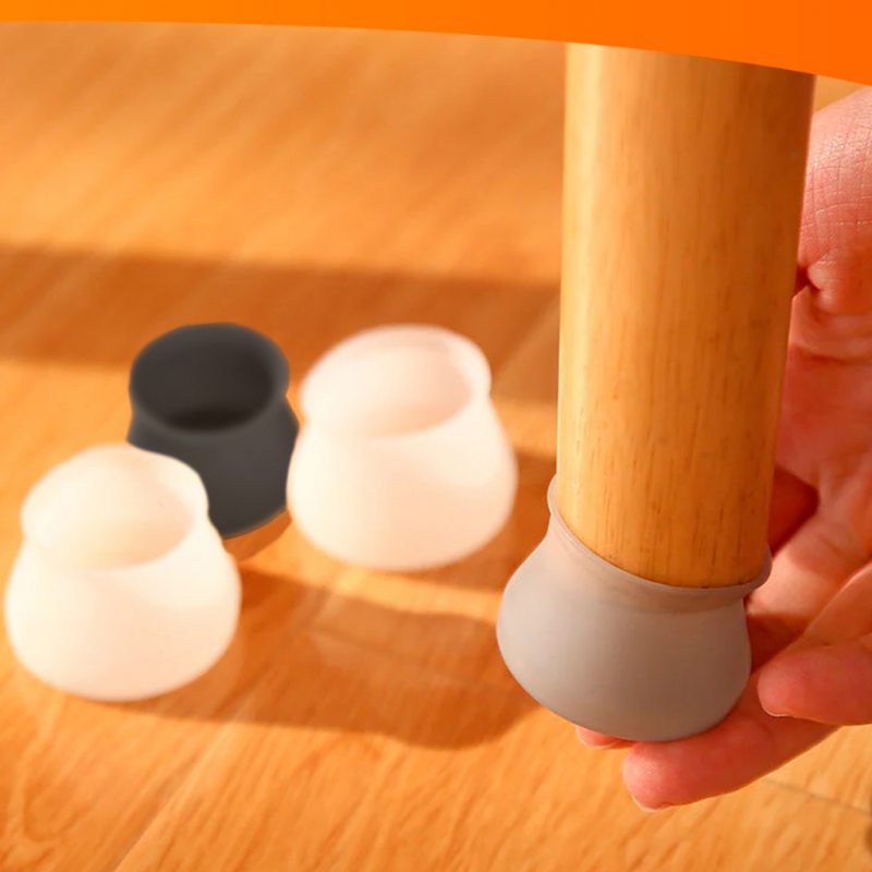 Essas capas de silicone se ajustam a pés de cadeira redondos ou quadrados, sem necessidade de cola. Quase invisíveis, têm base de feltro que protege o piso e evita o ruído ao arrastar os móveis. Um pequeno detalhe que prolonga a vida do piso e melhora o conforto acústico.