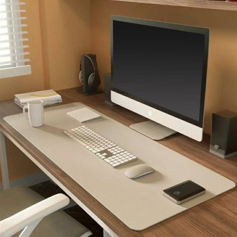 Com 1 metro por 48 centímetros, o desk pad cria uma superfície contínua e agradável para trabalhar. Além de proteger o tampo da mesa, ajuda a disfarçar riscos e dá um toque de acabamento. Disponível em várias cores — do rosa ao fendi —, é ideal para home office ou para renovar o visual de uma penteadeira. Marca: M3M