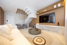 A arquitetura do prédio é de Luiz Bacoccini, enquanto Felipe Reichmann assina o paisagismo, criando uma base contemporânea para a recém-inaugurada cobertura duplex decorada. A unidade, que possui face norte e 209 m² privativos, foi totalmente mobiliada com peças da Artefacto, servindo como vitrine para um estilo de vida que prioriza a personalização.