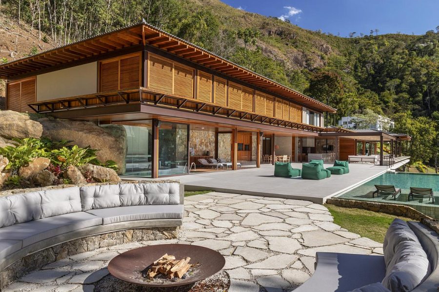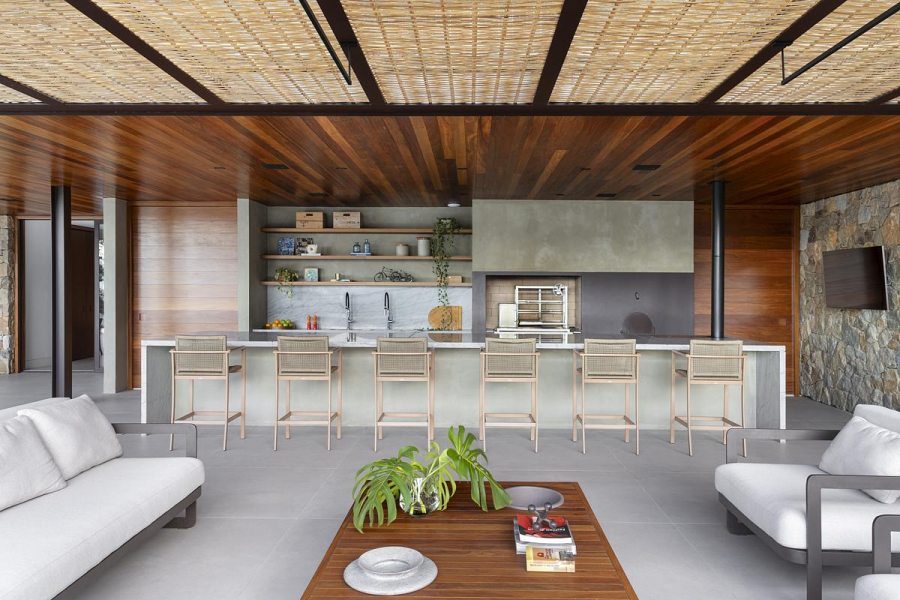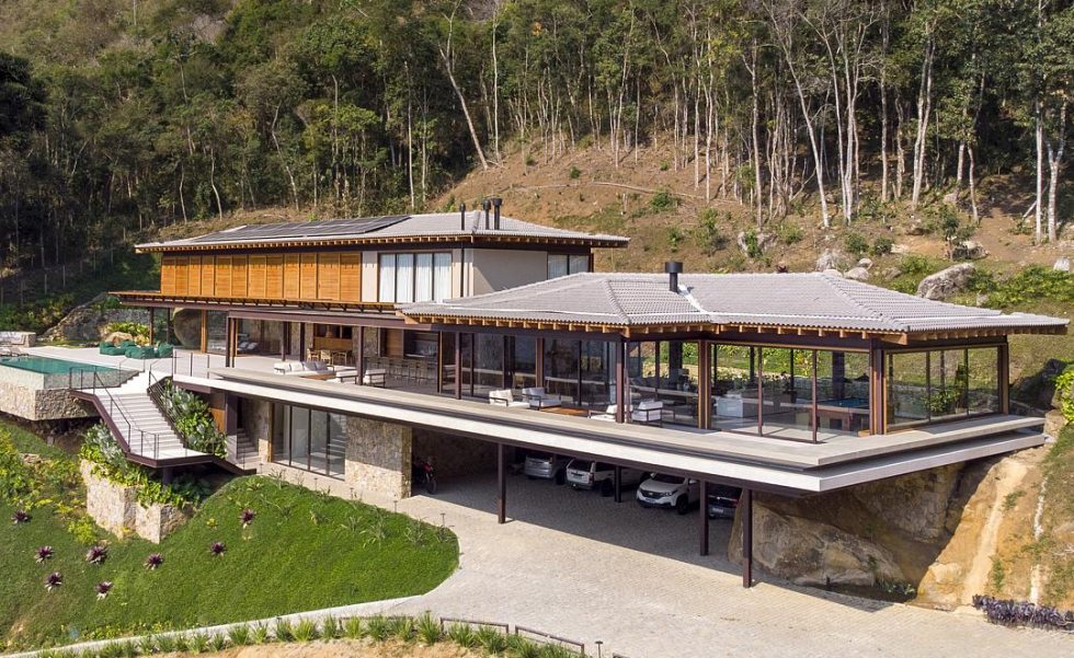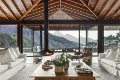 Grandes aberturas de vidro, áreas sociais integradas e espaços externos voltados para a vista completam o conjunto, que transforma a topografia acidentada em parte essencial da experiência da casa. Confira abaixo em nossa galeria de imagens.