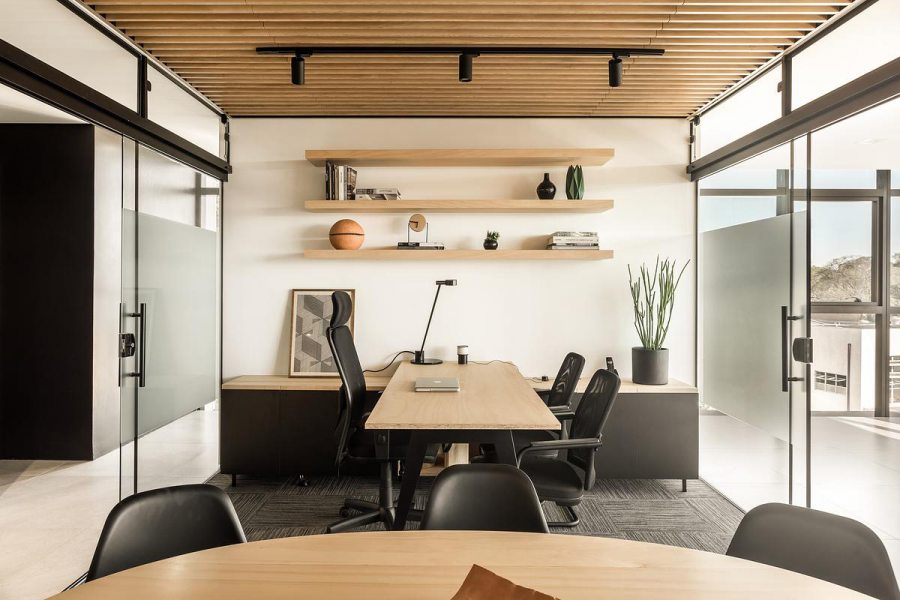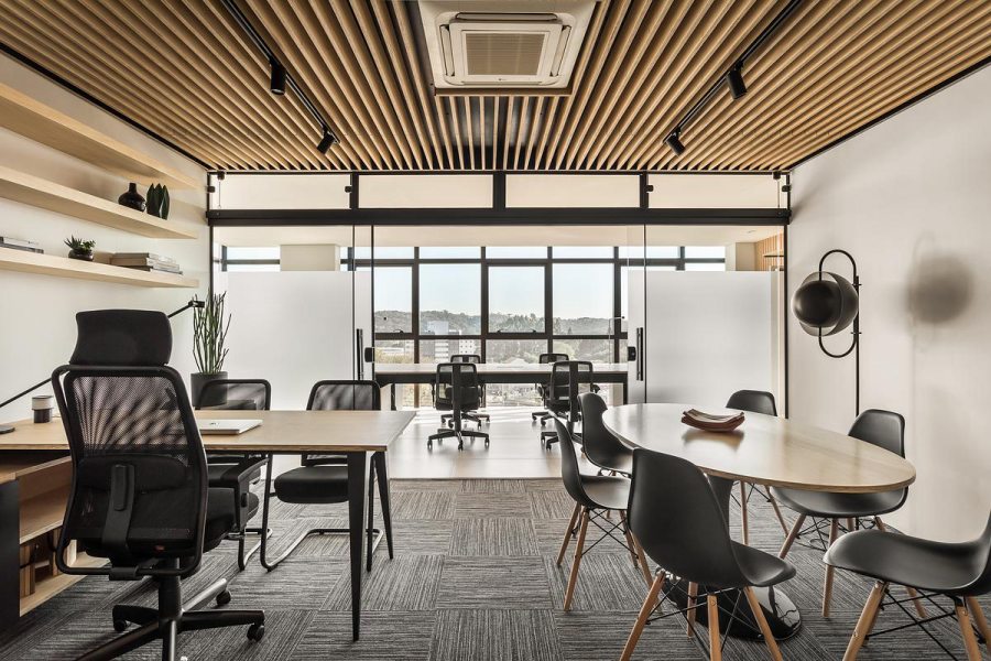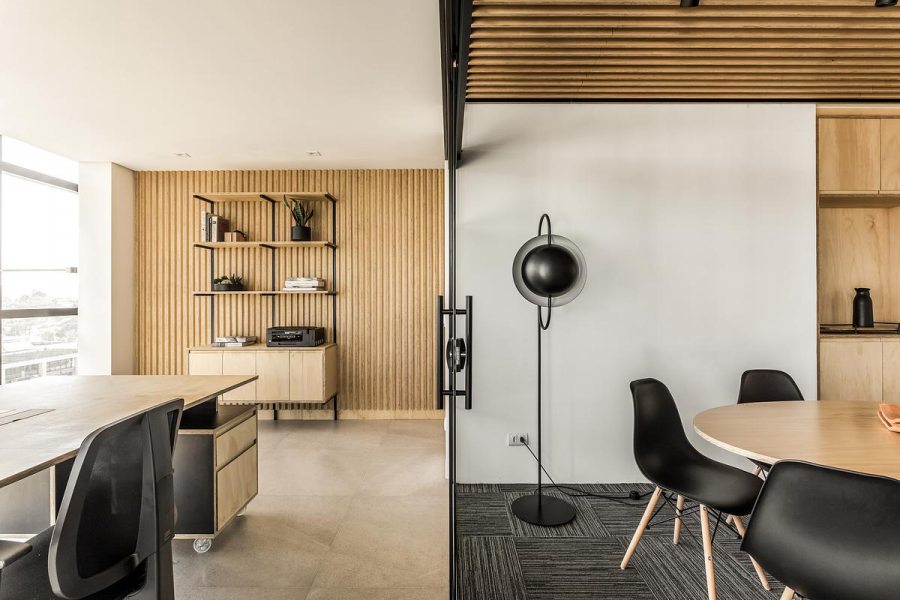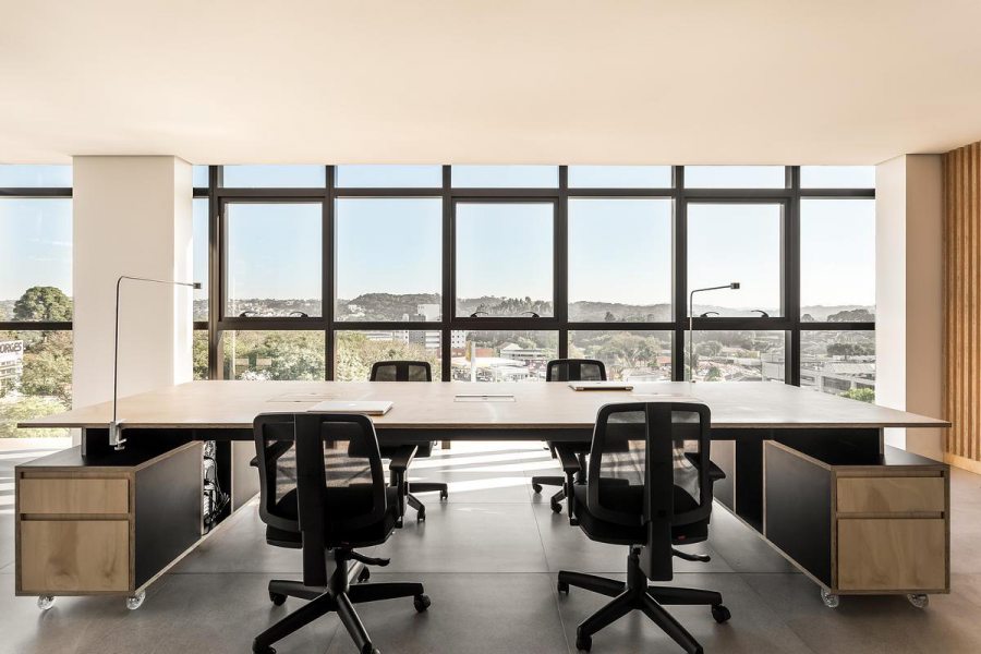 “Desde o início, nos deparamos com a incrível vista panorâmica da sala comercial para um dos maiores parques da cidade, o Parque Barigui. Sendo assim, buscamos valorizar essa qualidade do espaço através da organização das funções na planta livre”, ressaltam os profissionais.