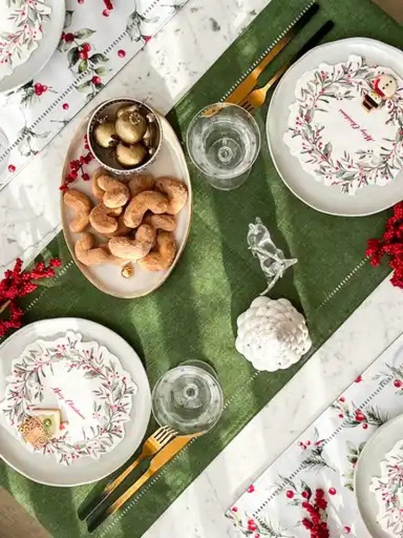 Jogos americanos, guardanapos, cachepots, pratos, sousplats e capas de almofadas integram a linha de Natal assinada por Rebeca Duarte Home.