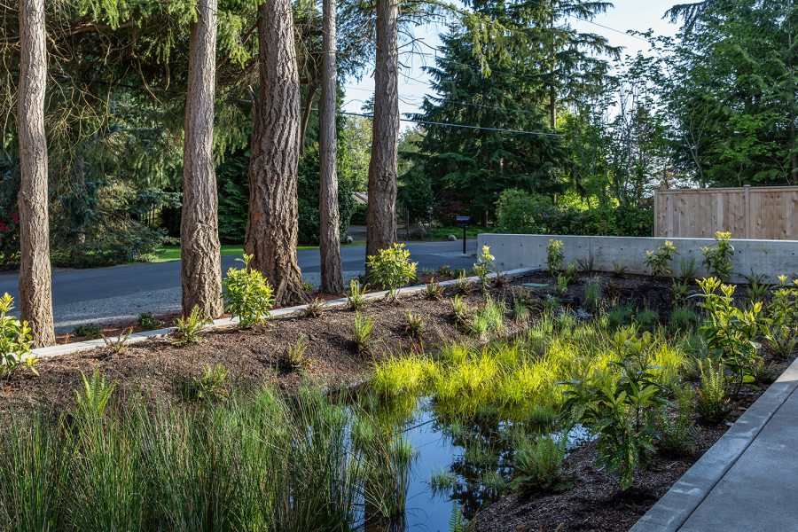 Um jardim de chuva não é apenas um canteiro comum, como um gramado, e precisa ser projetado junto com o sistema de drenagem da casa: calhas, condutores, pisos permeáveis e áreas de infiltração. Primeiro, é preciso entender o fluxo da água no terreno. O jardim de chuva deve ficar em um ponto aonde a água naturalmente chega — por exemplo, onde desemboca uma calha, ao lado de uma área impermeável ou em uma pequena depressão do lote. Se ele for colocado no lugar errado, a água pode simplesmente não chegar ali ou, ao contrário, acumular em excesso.