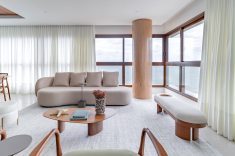 Uma tela em branco voltada para o mar, onde a reconfiguração da planta, a integração dos ambientes e o uso de materiais como madeira, mármore e porcelanatos de grande formato estão entre os pontos centrais. Assim é o projeto deste apartamento em Balneário Piçarras, no litoral norte de Santa Catarina, assinado pelo arquiteto Paulo Spessatto.