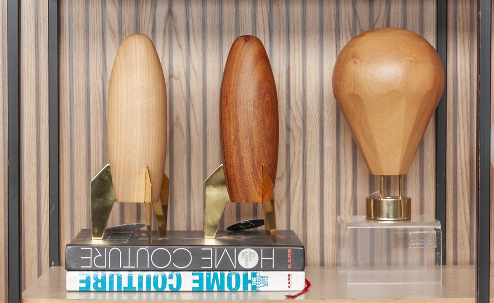 No campo dos objetos decorativos, a Modalli Design traz esculturas que transitam entre arte e decoração. As peças Rocket e Ballon, feitas em metal e madeiras Tawari ou Cumaru, têm mais de 25 centímetros de altura e funcionam como pontos de destaque em estantes, aparadores ou mesas laterais. Mais informações em www.modalidesign.com.br.