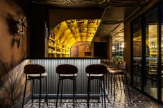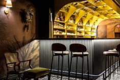 Estamos falando do Olga Speakeasy, também chamado de Olga Botica Bar, que tem projeto assinado pelo arquiteto Giuliano Marchiorato onde “nada é totalmente óbvio”. Desde a entrada, a arquitetura trabalha a sensação de descoberta com uma atmosfera mais intimista, iluminação controlada e forte construção cenográfica, reforçando a ideia de exclusividade e mistério.