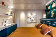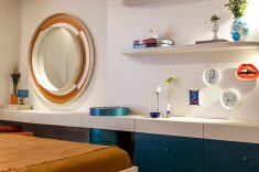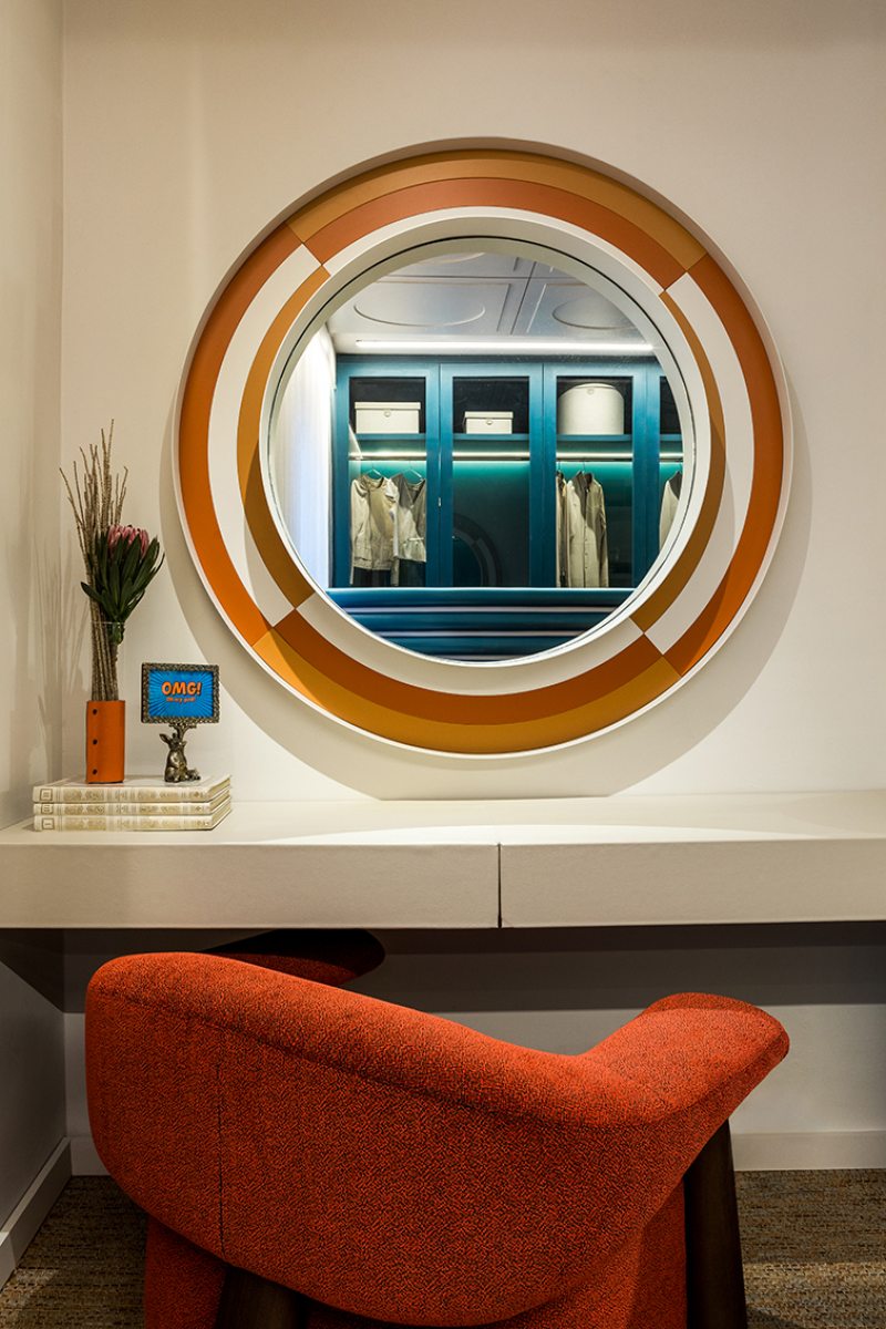 Tons Fortes e vibrantes se somam a acabamentos metalizados de laca de alto brilho para remeter ao cenário alegre e divertido que marcou uma geração. A ambientação é arrematada por peças assinadas, itens colecionáveis e obras de artistas locais todos inspirados em designers americanos que seguem o estilo “Happy Chic”.