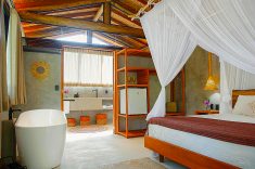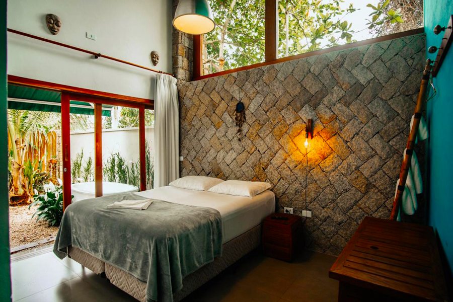 A praia de Camburi, no município de São Sebastião, litoral norte de São Paulo, é muito conhecida pela combinação de mar aberto, natureza preservada e uma vida gastronômica animada. É ali que fica o Reserva Camburi em meio a jardins, bambuzais e trilhas que levam a cachoeiras. Os chalés são afastados entre si, garantindo privacidade e uma percepção rara de silêncio. As cabanas, com decks de madeira e banheiras de imersão voltadas para o verde, trabalham com a estética da rusticidade contemporânea: linhas simples, materiais naturais e um desenho que privilegia a luz filtrada pela vegetação.