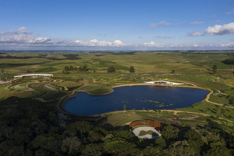 Onde: Serra Gaúcha • 07 de Janeiro - 2026 | Fotos Leonardo FinottiInstalado em meio a um grande parque na Serra Gaúcha, o Baffi é um convite para caminhar pela arquitetura — inclusive sobre o teto — e pela paisagem natural
