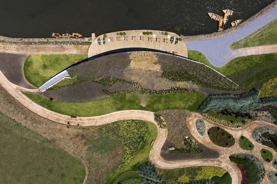 Implantado no interior do Mátria Parque de Flores, na Serra Gaúcha, o Baffi Restaurant funciona como espaço de contemplação e permanência, articulando arquitetura, paisagem e uso coletivo em um mesmo gesto. Localizado em São Francisco de Paula, o projeto parte de uma decisão clara: não se impor à paisagem. Assinado pelos escritórios Alencar e Ja8 arquitetura viva, o edifício acompanha a topografia natural do terreno e se estende em direção ao lago, explorando vistas abertas.