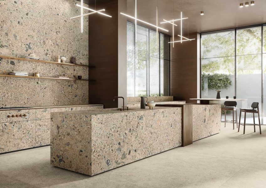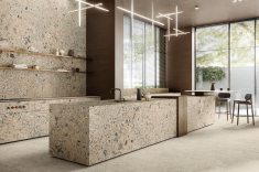 O designer Daniel Casagrande também reforça a confiança: “O Neolith é um material ultracompacto que resulta em lâminas resistentes e não porosas, com acabamentos diversos para bancadas, pisos e fachadas”.