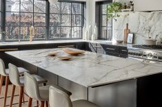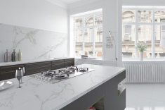 Já Pauline Kubiak vê na sinterizada a melhor resposta às limitações da pedra natural: “Indico a Neolith Classtone, que lembra o mármore branco Paraná, mas sem as manchas e com resistência ao calor. O mármore natural, por ser poroso, acaba manchando com pouco tempo de uso”.