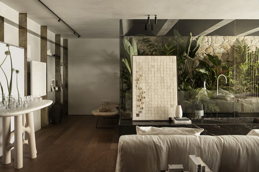 O destaque fica também para a presença das obras inéditas da ceramista Mitushi, que estreiam no ambiente e ampliam a proposta curatorial de unir arte contemporânea e interiores.