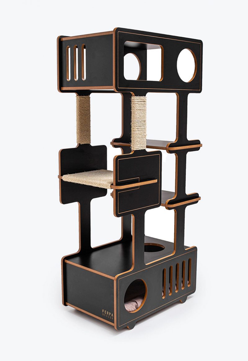Com o aumento da demanda, o mercado passou a oferecer produtos em diferentes níveis de design e preço. Há desde soluções simples vendidas em pet shops e grandes redes de varejo até peças assinadas por designers e produzidas por marcas especializadas. Empresas internacionais como Pet Interiors, Mau Pets e Pet Empire trabalham com camas, sofás e estruturas para gatos desenvolvidas com materiais semelhantes aos do mobiliário residencial, como madeira, tecidos estruturados e espuma de alta densidade.