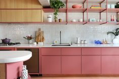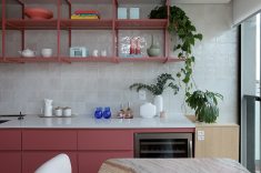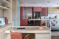Onde: São Paulo • 30 de Janeiro - 2026 | Fotos Mariana OrsiProjeto do Studio 92 Arquitetura reorganizou o apartamento compacto em São Paulo através da marcenaria sob medida e uso expressivo da cor rosa.