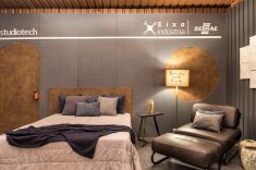 "Escolhemos Arauco pela qualidade indiscutível do material, mas também porque nos identificamos com os valores da marca. O padrão Alpaca traz conforto e aconchego, enquanto o Espresso e o Camelo são cores neutras, que combinam com tudo. Tons acinzentados evocam conforto e modernidade às composições, além de inspirarem sutileza, maturidade e responsabilidade. O Camelo, por sua vez, é mais quente e invoca nossa conexão com a terra. No fim, conseguimos uma combinação elegante e carregada de significados", comentou Maingué.
