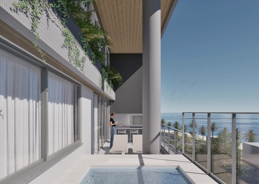 No litoral do Paraná, por exemplo, o verão é intenso e, muitas vezes, instável. Em Guaratuba, onde o Estúdio Convexo atua com dois empreendimentos, o La Vista, em construção, e o projeto do residencial Pé na Areia, o desafio técnico envolve projetar para uma condição de alta umidade, variações rápidas de temperatura e incidência solar relevante, além de uma atmosfera que interfere na durabilidade dos componentes. Nesse contexto, falar de litoral sempre remete ao verão, mas também a um conjunto de decisões que precisam equilibrar ventilação cruzada, proteção solar, desempenho de fachadas e conforto nos ambientes de permanência, evitando a sensação de abafamento e a perda de qualidade espacial nos horários críticos.