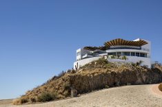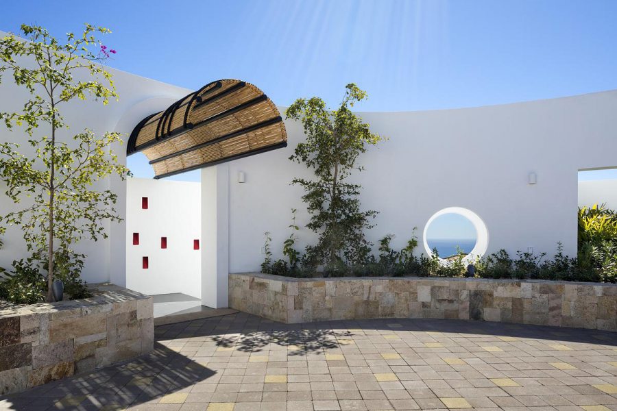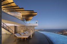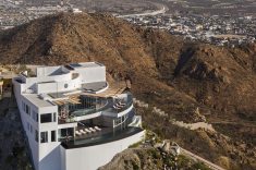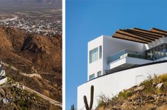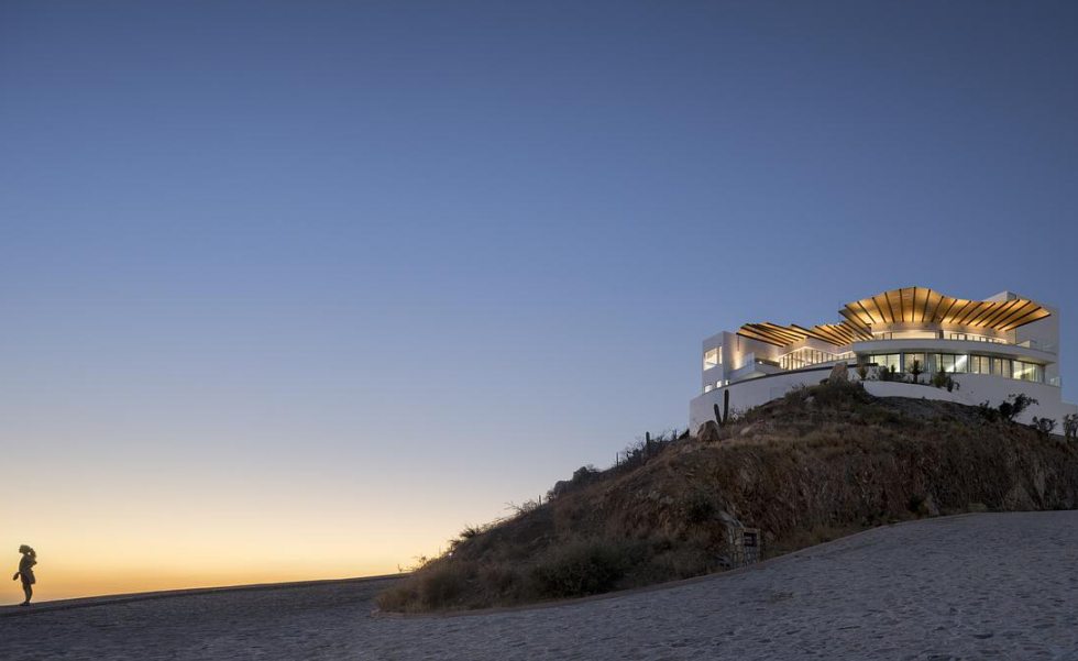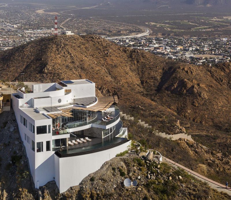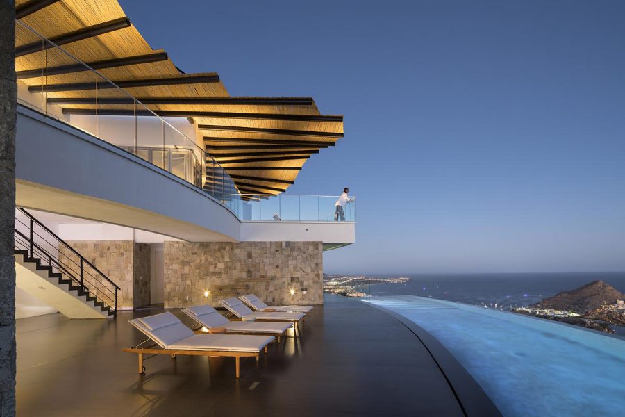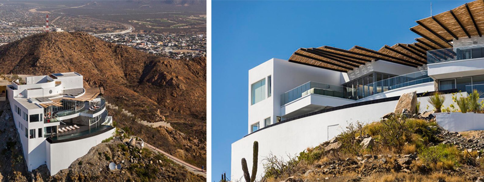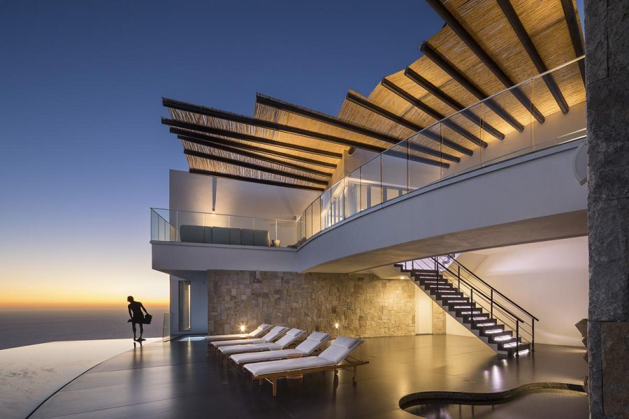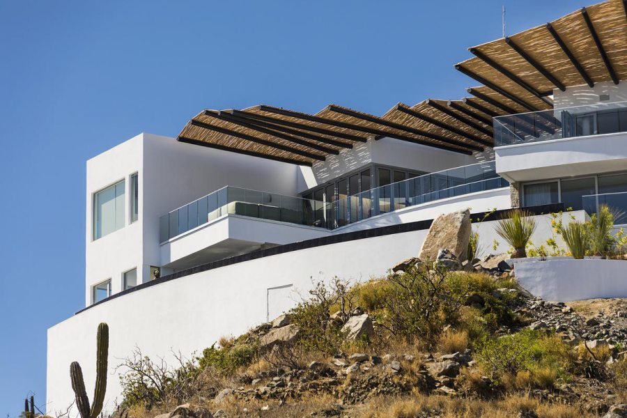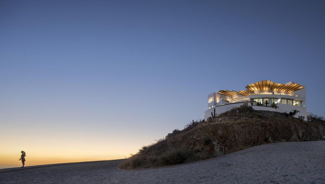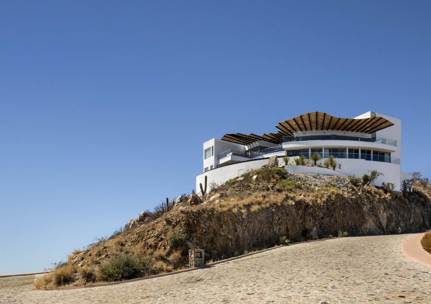 Construída no topo de uma montanha na ponta da Península de Baja, em Cabo San Lucas, no México, a Casa Ambar é um projeto que entende a força do território e responde a ele com precisão. Mais do que ocupar o terreno, a casa se encaixa em sua inclinação acidentada e faz da própria geografia o elemento que conduz temperatura, luz e circulação.