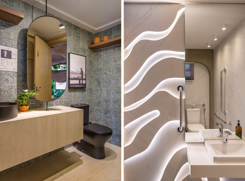 Em Uberaba (MG), a Casa Shopping 2025 destacou o talento de estudantes da Uniube em parceria com a Roca Cerámica. No concurso Banheiro Criativo Roca, dois jovens arquitetos deram mostras de inventividade e domínio técnico. Alessandro Bernardinelli criou um banheiro masculino com porcelanatos que remetem à pedra natural e ao mármore travertino, enquanto Gabriel Henrique apresentou o banheiro feminino Gaia, com curvas, texturas orgânicas e revestimentos que evocam mármores exóticos. A iniciativa reforçou o compromisso da marca em apoiar novos talentos, aproximando a academia do mercado.