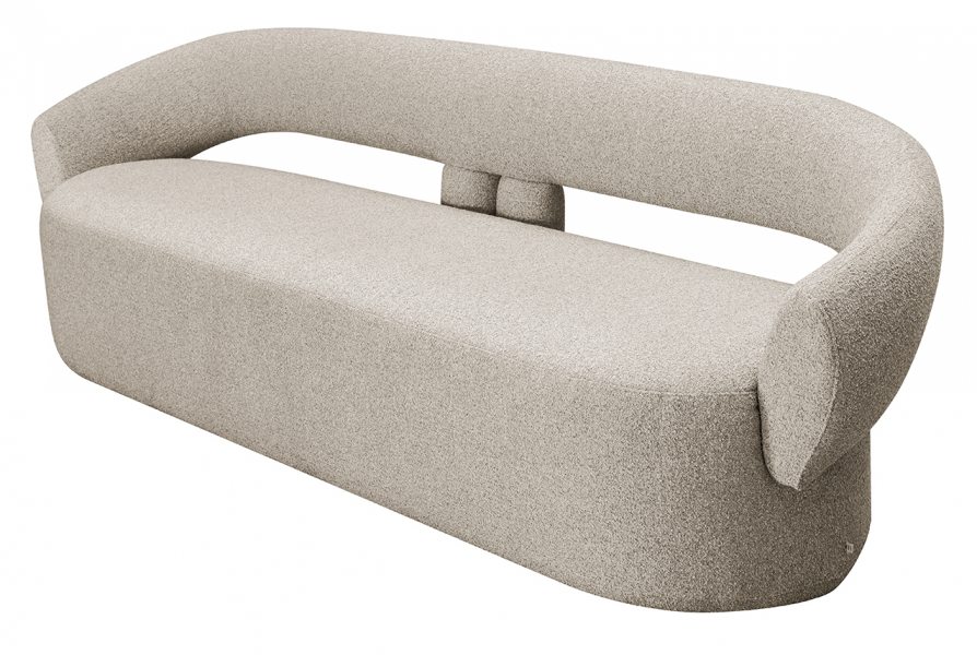 Entre os lançamentos autorais apresentados na feira, a designer gaúcha Marta Manente apresenta a coleção Terroir, composta por sofá e poltrona desenvolvidos em parceria com a indústria Modalle. O projeto parte de um conceito conhecido no universo da vitivinicultura — o terroir — que relaciona solo, clima, cultura e tempo como fatores que definem a identidade de um vinho. Transportada para o design, a ideia aparece em formas orgânicas e em uma estrutura na qual a madeira da base funciona como eixo visual da peça, evocando a imagem das raízes de uma videira. A coleção combina alumínio, madeira de teca e tecidos tecnológicos pensados para ambientes internos e externos.