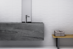 Em revestimentos cerâmicos, o branco redefine a percepção das juntas e da paginação. Em pedras naturais, intensifica veios e relevos sem competir com eles. Em superfícies acetinadas ou foscas, modifica a reflexão luminosa e, consequentemente, a atmosfera do ambiente. Madeira, metais, tecidos e pedras passam a se destacar com maior clareza quando o fundo é controlado.