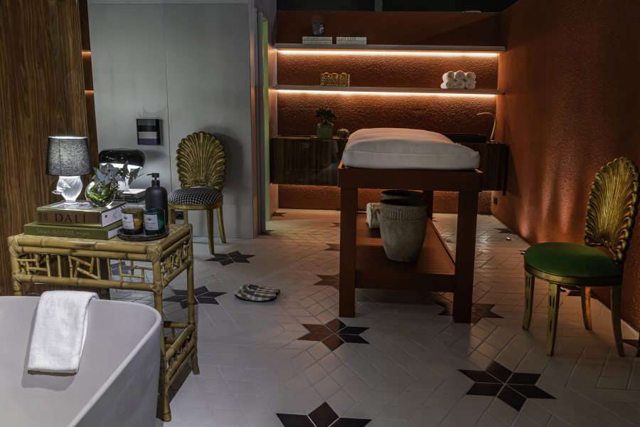 Cores, texturas e formas propõem uma sofisticada fusão do antigo com o novo. A mistura de materiais e o uso abundante de obras de arte e objetos com pegada artsy e a assinatura A Sense of Place dos dois escritórios, em que a cultura e a história servem de inspiração para todos os momentos passados ali, evidenciam o estilo ultraluxury adotado pelo trio. O arrebatamento visual fica por conta do emblemático mobiliário em murano, com DNA brasileiro e assinatura dos profissionais, desenhado especialmente para a CASACOR.