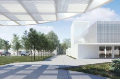 No novo centro de eventos a pureza das linhas arquitetônicas será destacada pela pintura branca nas fachadas e nos interiores. A área externa será revestida por micro-cimento Ghost, da Monofloor, enquanto a lateral do edifício antigo receberá painéis-grelha para textura e contraste. A área de circulação dos funcionários contribuirá para o efeito cênico do projeto graças a laterais em vidro autoportante. Confira todas as imagens em nossa galeria!