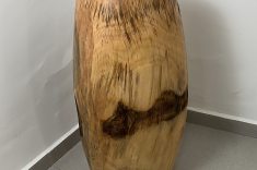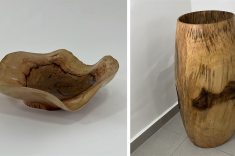 Já Talita Castro destacou o reaproveitamento de troncos resgatados, transformando-os em esculturas decorativas que preservam a beleza natural da madeira.