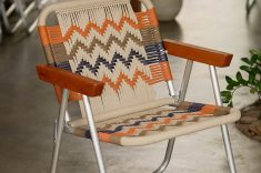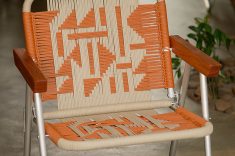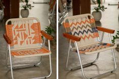 O Studio AHO levou à feira cadeiras de praia com estampas geométricas, enquanto a designer Ceyla Lacerda explorou a fauna brasileira em mantas que retratam serpentes e tartarugas.