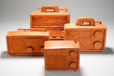 O designer Beto, do Cariri, apresentou uma escultura em madeira inspirada no clássico “radinho de pilha”, em lançamento do Garimpo de Cá, representado pela Marco 500.