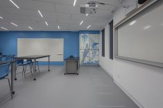 Ciências Físicas (7ª Série): as salas foram pintadas utilizando a paleta e tons azuis, aludindo às vastas extensões do céu e dos oceanos, e aos princípios da física.