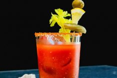 Mexa delicadamente em copo alto com gelo e decore com talo de salsão.
