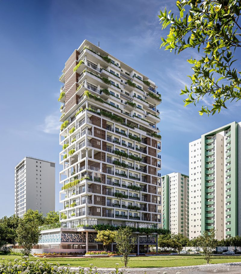 Essa visão não se restringe a regiões específicas. No Brasil, um país de dimensões continentais, cada território traz desafios e oportunidades próprios. Em projetos realizados no Sul e no Norte, como no residencial Forma 32 em Palmas (TO), o Estúdio Convexo aplica os mesmos princípios de observação e adaptação: compreender o comportamento do sol e dos ventos, integrar vegetação ao edifício e transformar condições ambientais em conforto.
