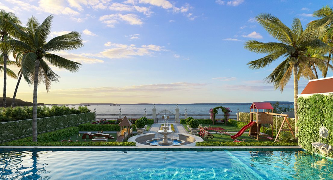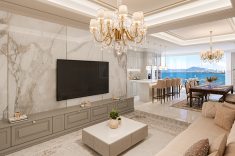 Você vai morar na praia. A localização é privilegiada, o mar está logo ali, mas a estética do seu novo lar não remete a conchas, palha, madeira clara ou azul turquesa. Em vez disso, você abre a porta e se depara com colunas coríntias, lustres de cristal, ornamentos dourados e salas com inspiração nos salões da monarquia europeia. Parece uma contradição?