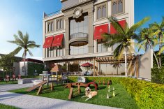 Segundo a construtora, trata-se de uma “arquitetura afetiva”, com forte apelo emocional e cultural. O projeto adota colunas clássicas, elementos de inspiração neoclássica, molduras ornamentadas e ambientes com pé-direito duplo. Um estilo que não agrada a todos, mas conquista um nicho específico que valoriza exuberância, tradição e um certo ar de realeza.