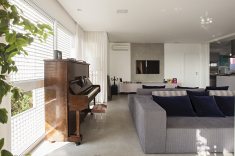 A conexão emocional proporcionada pela decoração afetiva é fundamental para estabelecer um vínculo profundo entre o morador e sua casa. Nesse ambiente integrado, que combina sala de TV e living, o piano antigo ganha destaque representando uma herança de família valorizada no projeto | Projeto do escritório Korman Arquitetos | Foto: Gui Morelli