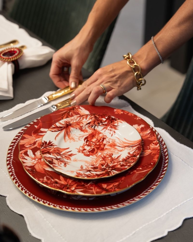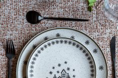 Jogos americanos, guardanapos, cachepots, pratos, sousplats e capas de almofadas integram a linha de Natal assinada por Rebeca Duarte Home.