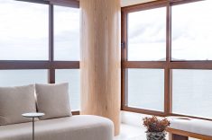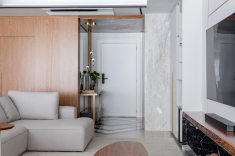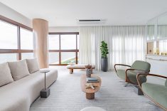 Uma tela em branco voltada para o mar, onde a reconfiguração da planta, a integração dos ambientes e o uso de materiais como madeira, mármore e porcelanatos de grande formato estão entre os pontos centrais. Assim é o projeto deste apartamento em Balneário Piçarras, no litoral norte de Santa Catarina, assinado pelo arquiteto Paulo Spessatto.